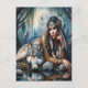 Cartão Postal Mística Uma Mulher Nativa Americana Com Lobos