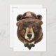 Este design apresenta um urso pintado em aquarelas vestindo um chapéu e uma gravata de arco.