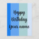 Padrão de listras azuis legais com texto: Feliz Aniversário e um modelo de nome. Adequado para um estilo marítimo.