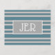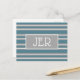 Este modelo de design moderno apresenta um fundo turquesa com listras elegantes em cinza e branco, o verso é branco com um divisor cinza. Personalize com um monograma inicial de duas ou três letras. A composição é simples, elegante e sofisticada. Esperamos que você goste! Achamos que é um sucesso!