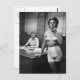 modelo de lingerie, vestindo uma cinta e um sutiã sem fios, fumando num escritório; no fundo, uma mulher senta-se numa secretária