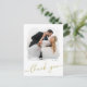 Cartão Postal Modern Brush Photo Gold Script Wedding Thank You