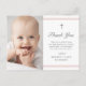 Modern Elegance Girls Baptism Obrigado é um cartão-postal moderno e limpo, com faixas cor-de-rosa macia e uma cruz com foto na frente. A parte de trás é um postal endereçável. O tipo personalizável de cinza permite que você altere todas as informações da placa para seu gosto. Perfeito para um batismo feminino.