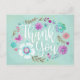 Este cartões de agradecimentos elegante foi desenhado com flores lacrimogêneas e roxas e as palavras obrigado você em uma bela escrita branca. A parte de trás do cartão-postal tem uma textura de cor d'água de rosa claro que é leve o suficiente para ser capaz de escrever sua própria saudação. Projetado para você pelo Blackberry Boulevard.