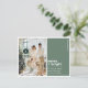 Cartão Postal Modern Green “Merry + Bright” Christmas Photo
