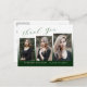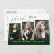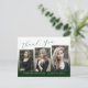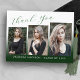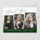 Este moderno e elegante cartão de "Obrigado" de formatura com 3 fotos, apresenta elementos de design de texto moderno fundido com um estilo de caligrafia manuscrita. As fotos da formatura são exibidas na frente do cartão, enquanto o verso oferece espaço para texto personalizado para uma mensagem de agradecimento ou pode ser deixado em branco se desejar escrever sua mensagem à mão. Um gradiente branco elegante desvanece para um verde floresta-caçador na frente do cartão ou facilmente personalize para uma cor de sua escolha.