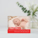 Um cartão postal de anúncio de bebê simples e moderno em vermelho brilhante. Personalize com os detalhes do seu bebê e uma foto especial do seu novo filho. Uma ótima maneira de anunciar a chegada do seu novo filho para familiares e amigos.