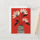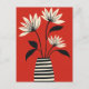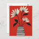 Um buquê vermelho acinzentado em um pequeno pop de vaso com listras brancas contra um fundo plano de mostarda—retrovibração com talo de eterno.