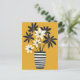 As pétalas de ouro ensolaradas emergem de um vaso branco brilhante em azul cobalto ousado — quente, alegre e limpo.