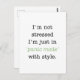 Eu, estressado? Nunca. Um bom impressão ou cartão postal para fazer você rir quando você quer sarcasmo-lo do estresse!