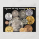 Cartão Postal Moedas Coletando: Gasto todo meu dinheiro com dinh