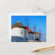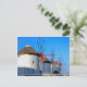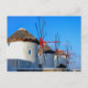 Os moinhos de vento ícones ficam vigiando a vila das colinas acima.
