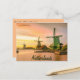 Este cartão-postal apresenta moinhos de vento ao pôr do sol na Holanda, Países Baixos. Aproveite seu novo Windmills no Sunset na Holanda, Cartaz Holandês!