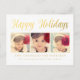 Cartão Postal Moldura de Foto de Natal Felizes Festas em Folha d