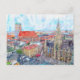 Cartão Postal Molho de tinta aquosa, Marienplatz. Áreas.