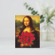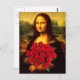 Cartão Postal Mona Lisa Com Buquê De Rosas Vermelhas