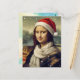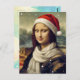 Cartão Postal Mona Lisa in Santa hat - festive vibes