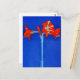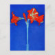 Cartão postal Mondrian Amaryllis. Cor da água na canvas desde 1910. Esta obra primitiva de Fauvist de Mondrian é uma das mais cativantes do artista. O trabalho apresenta três lindas flores vermelhas de amarillis em floração de cheio e uma flor ainda inbuída sobre fundo azul. Os caules das flores são azuis-claros à medida que se erguem de uma garrafa de refrigerante de vidro. Um belo presente para fãs de Mondrian, Fauvism, flores de Amaryllis e arte holandesa.