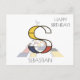 Monograma artístico, engraçado e cheio de glamour. Aqui está a letra "S". Estilo Neoplasticismo, ou De Stijl, decoração artística de linha e cor, o passarinho engraçado pousado sobre a letra. O campo de arte está localizado abaixo da letra. O nome do modelo "SEBASTIAN" está localizado abaixo da imagem. Texto "Feliz Aniversário!" perto da imagem. Você pode alterar ou excluir todos os textos e também pode alterar a imagem. Cartão-postal único, feito sob medida para um aniversário ou outro evento. Sinta-se à vontade para usar o botão de cor azul "Editar Design" ou "Personalizar" (conforme o caso) para alterar a fonte, a cor ou a posição do texto do modelo. Seja criativo, personalize, compre um e seja feliz!
