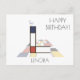 Monograma artístico, engraçado, incrível. Aqui está a letra "L". Estilo Neoplasticismo, ou De Stijl, decoração artística com linha e cor, o passarinho engraçado sentado na letra. O campo de arte está localizado abaixo da letra. O nome do modelo "LENORA" está localizado abaixo da imagem. Texto "Feliz Aniversário!" perto da imagem. Você pode alterar ou excluir todos os textos e também pode alterar a imagem. Cartão postal único, feito sob medida para um aniversário ou outro evento. Sinta-se à vontade para usar o botão de cor azul "Editar Design" ou "Personalizar" (conforme o caso) para alterar a fonte, a cor ou a posição do texto do modelo. Seja criativo, personalize, compre um e seja feliz!