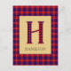 Cartão Postal Monograma H em Tartan de Hamilton