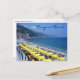 Cartão postal de Monterosso al Mare, Cinque Terre, Itália. Cartão postal totalmente personalizável. Monterosso é uma cidade e comunidade na província de La Spezia, parte da região de Liguria (Itália norte). É uma das cinco aldeias de Cinque Terre. A cidade está dividida em duas partes distintas: a velha cidade e a nova cidade. As duas áreas são divididas por um túnel de solteiro que atende aos pedestres e aos poucos carros da cidade. A praia de Monterosso percorre a maior parte da linha costeira e é bem utilizada por turistas e locais. A praia é a única praia de areia extensa no Cinque Terre. Monterosso é uma pequena cidade que, nos meses de Verão, é invadida por turistas.