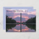 Este cartão postal apresenta o Monumento a Washington em Washington, D.C. Construído para homenagear George Washington, o primeiro presidente dos Estados Unidos, o obelisco de mármore de 555 pés ergue-se sobre Washington, D.C. Com 554 pés e 7 11⁄32 polegadas, é ao mesmo tempo a estrutura predominantemente de pedra mais alta do mundo e o maior obelisco do mundo. É feito de mármore, granito e gnaisse de bluestone. O Monumento foi inaugurado em 21 de fevereiro de 1885.