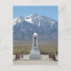 Esta foto mostra o monumento memorial no antigo campo de internamento Manzanar na Califórnia. As montanhas de Sierra Nevada são vistas ao fundo. Uma cena muito pacífica e majestosa.