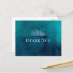 Este moody obrigado de casamento de aquarela oceânica que você faz o postal é perfeito para seu simples casamento de boho tropical. Projetado com folhas tropicais brancas minimalistas e um incrível fundo azul escuro e verde.