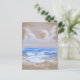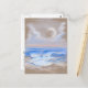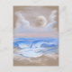 Este trabalho de arte pastel apresenta uma ascensão de lua pálida sobre um banco de nuvens no céu à noite sobre ondas quebrando na costa em Myrtle Beach, SC.