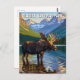 Cartão Postal Moose na Viagem do Parque Nacional Glacier