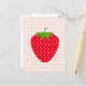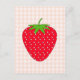 Belo design de morango vermelho brilhante, com um topo verde e um padrão de verificação de gingham de rosa claro.