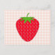 Cartão Postal Morango Vermelho na Gingham Check.