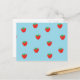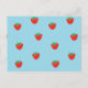 Morangos Cartão-postal azul. O cartão postal personalizável tem morangos vermelhos agudos em um fundo azul claro.