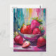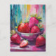 Uma pintura animada de comida de arte moderna em estilo impressionista, apresentando uma vida estática de morangos fundidos com pinceladas brilhantes e texturizadas. As cores vibrantes — cor-de-rosa, vermelha, lacrimejante e amarela — se combinam para criar uma composição ousada e energética. Os derrames texturizados e o uso lúgubre da cor dão vida aos morangos, capturando sua beleza natural de forma fresca e contemporânea.