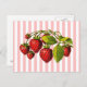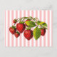 Cartão Postal Morangos em Stripes Brancas e Rosa