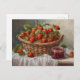 Cartão Postal Morangueiro em uma Cesta e Geleia de Morango