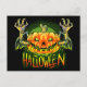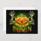 Cartão Postal Morcego de abóbora neon de Halloween assustador