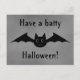 Um morcego vampiro bonitinho e simples em uma carta de posto de cinza escura que diz "Tenha um Halloween morcego!" Isso também seria bonito se fosse enquadrado.