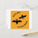Pequenos morcegos fofos desejando um feliz 'parabéns pelo Halloween' nesta ilustração digital festiva.