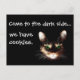 Felinos engraçados com atitude. Slogan "Venha para o lado negro...temos biscoitos" no cartão postal.