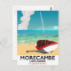 Morecambe, poster de viagens britânico de Lancashire, de um velho barco de madeira na praia arenosa durante um agradável dia quente.