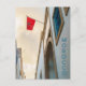 This elegant postcard features the vibrant red flag of Morocco flying proudly against a backdrop of traditional white-washed architecture. A soft blue vertical "MOROCCO" typography complements the intricate blue lattice window. It is the perfect keepsake for travelers and lovers of Moroccan culture and scenic photography.