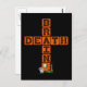 Uma cruz tem a palavra "cérebro" na vertical e a palavra "morte" na barra transversal, ambas compartilhando a letra "e". Na base há uma lápide, árvore morta e lua. Presente para Grande Ateu e camiseta.