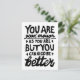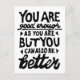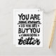 Impressão de lino preto e branco de uma citação motivacional que diz "Você é bom o suficiente, mas você pode sempre ser melhor". Oferece encorajamento às pessoas para saberem que a autoaceitação e o crescimento andam de mãos dadas.