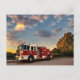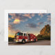 Este cartão-postal apresenta um motor de incêndio com um fundo espetacular.