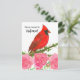 Um cartão-postal comovente, decorado com uma ave cardeal macho e flores cor-de-rosa, ilustradas com tinta e pintadas com aquarela. Inspirado pelo pássaro estadual e flor estadual de Indiana. Aproveite o "Estado Hoosier"! Você pode editar o texto com seus detalhes.