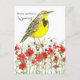 Um cartão-postal comovente, decorado com um pássaro amarelo-pássaro-do-pântano ocidental brilhante com flores silvestres vermelhas do pincel índio, ilustradas com tinta e pintadas com aquarela. Inspirado pelo pássaro e flor estadual de Wyoming. Aproveite o Estado da Igualdade! Você pode editar o texto com seus detalhes.