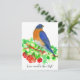 Um cartão-postal de anúncio comovente, decorado com um pássaro azul com rosas vermelhas brilhantes ilustradas com tinta e pintadas com aquarela. Inspirado pelo pássaro e flor estadual de Nova York. Aproveite o Estado Império! Você pode editar o texto com seus detalhes.