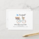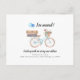 Em movimento na minha bicicleta, mude de endereço de cartão de anúncio com uma bicicleta feminina de cor d'água com um cesto de flores e luggages no rack. Perfeito para informar os amigos e a família sobre seu novo endereço e onde a provável festa de aquecimento de casa acontecerá. Adicione seus novos detalhes clicando no botão "Personalizar" acima